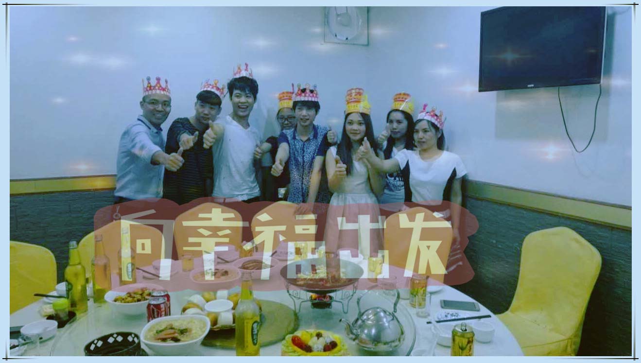 下午18:00,9位壽星在操場集合,奔向了晚宴現(xiàn)場。看著博皓電子為大家準(zhǔn)備的那一桌子