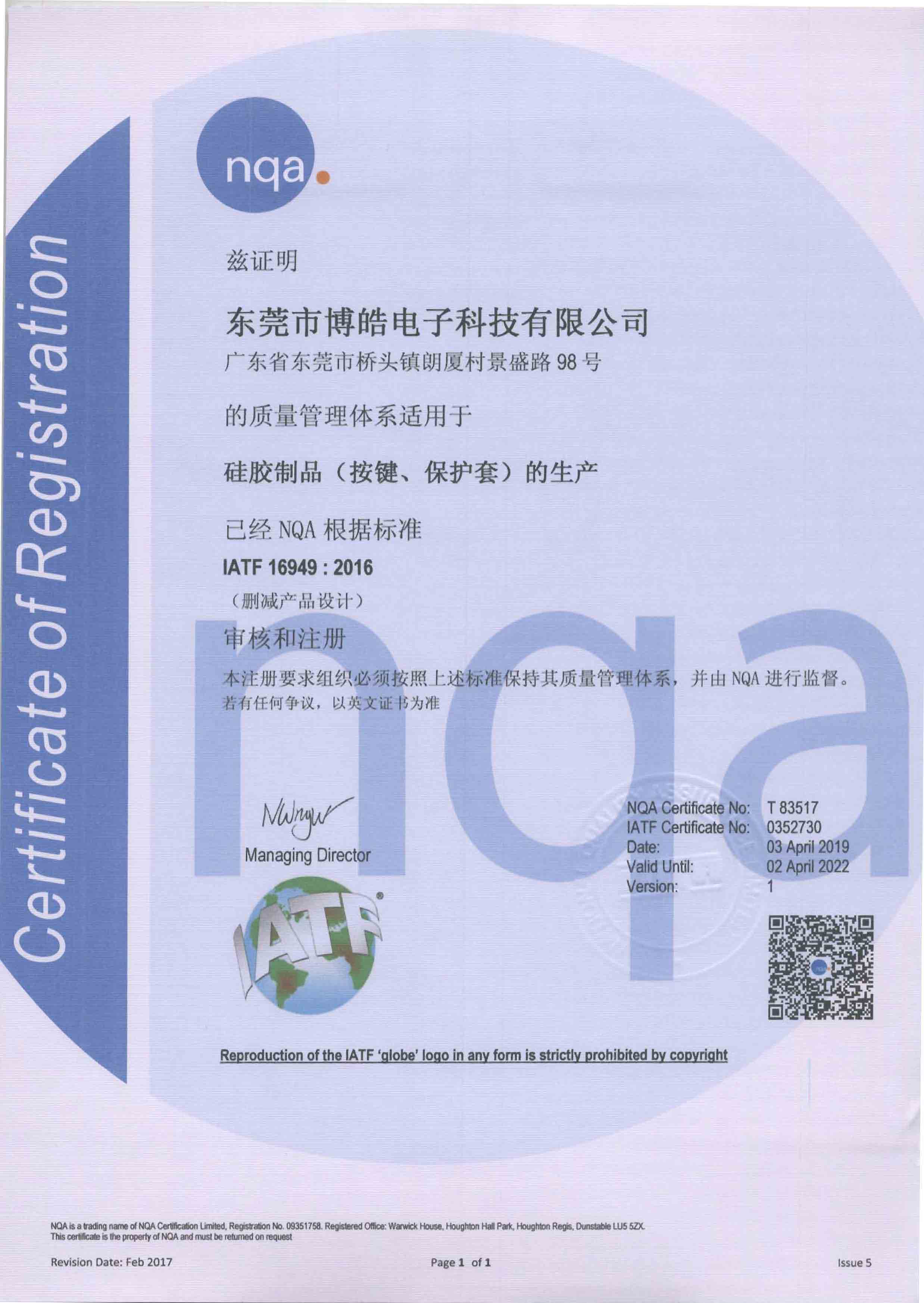 此文關(guān)鍵字:IATF16949,通過(guò)IATF16949認(rèn)證,IATF16949證書(shū)