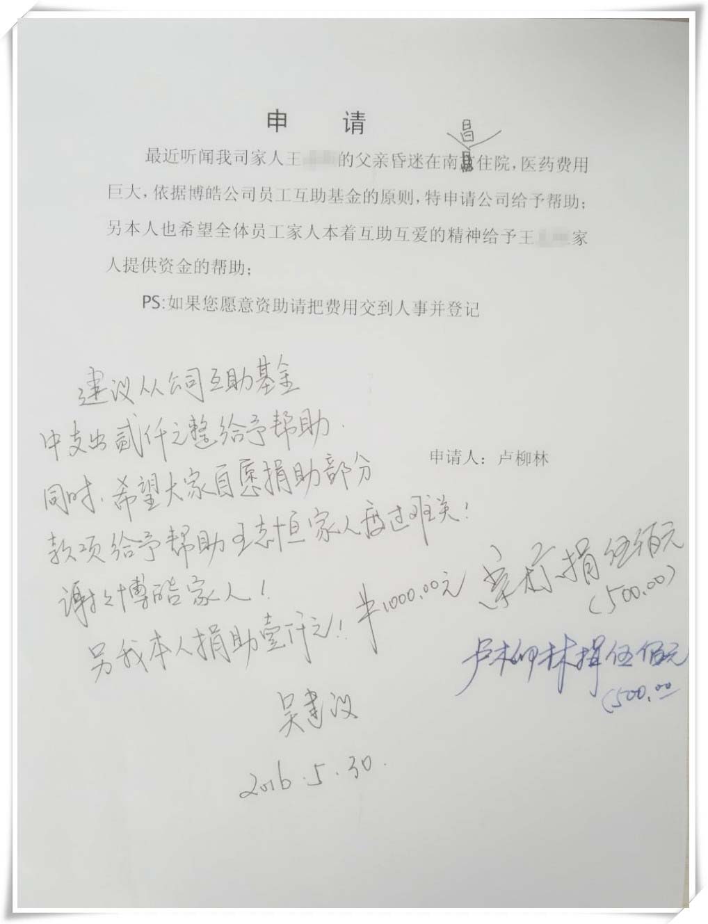 2016年6月伊始,大家都在為幸福生活忙碌之際,一個(gè)噩耗從天而降。博皓硅橡膠制品廠(chǎng)優(yōu)秀員工小王的父親因隱球菌性腦膜炎在醫(yī)院昏迷不醒。此對(duì)于這個(gè)風(fēng)雨飄搖的小家庭不異于雪上加霜。