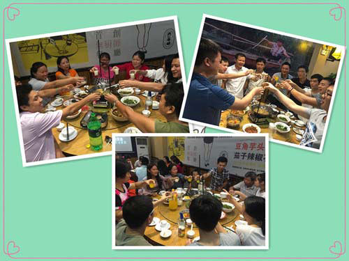 在聚餐期間,大家推杯換盞,聊得不亦樂乎。這段時間,博皓電子生產任務比較重,為了讓定制按鍵的客戶準時拿到產品,公司上下齊心協(xié)力,全力以赴。公司吳總特地高舉酒杯,感謝大家的努力付出,并希望大家繼續(xù)攜手共進,開創(chuàng)美好明天。