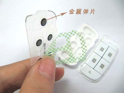 鍋?zhàn)衅暮锰幵谟诰哂蟹浅:玫墓潭ㄐ?、平穩(wěn)性、回彈性和導(dǎo)通性,但在成本上則高于其它導(dǎo)電方式產(chǎn)品,如油墨導(dǎo)電和黑粒導(dǎo)電。鍋?zhàn)衅?a href="http://m.njgsgs.cn/product/">硅膠按鍵之所以具備導(dǎo)電的作用,其原因在于鍋?zhàn)衅谋∧ぐ存I部位設(shè)計(jì)有金屬?gòu)椘?,主要為不銹鋼材質(zhì),具有非常好的導(dǎo)電壽命,它的工作原理是當(dāng)按鍵面受力時(shí),鍋?zhàn)衅慕饘購(gòu)椘掳迹瑥亩佑|到PCB板,形成電流回路,即為正常工作。