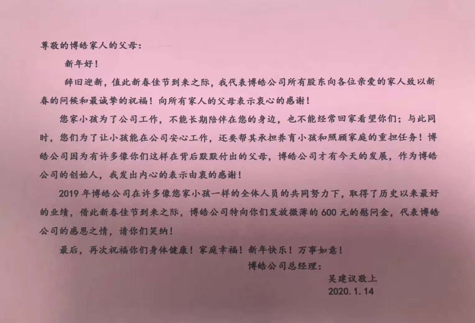 春節(jié)將至,博皓電子生產(chǎn)硅膠按鍵一線還是熱火朝天的加班中,2020年1月14日,雖然我們今年忙得年前沒有時(shí)間召開年會(huì),但我們一年一度的博皓電子員工父母慰問金及差旅費(fèi)發(fā)放儀式提前舉行。吳建議總經(jīng)理、盧柳林副總經(jīng)理、宗標(biāo)副總經(jīng)理、各分管經(jīng)理主管及全體員工共150余人參加本次活動(dòng)。