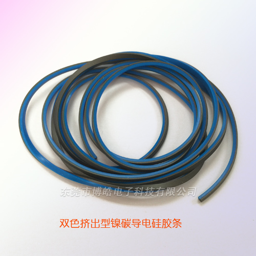 [碳鎳硅膠+藍(lán)色硅膠雙色擠出成型導(dǎo)電硅膠條]