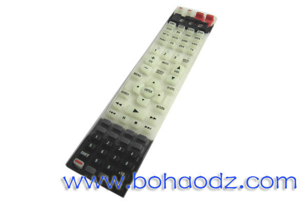 - 產(chǎn)品簡介:此款遙控器按鍵,除采用傳的生產(chǎn)工藝:成型、絲印、噴涂外,其主要特色是,在硅膠原料中加入了一定比例的熒光粉,使用按鍵在黑暗的環(huán)境下發(fā)出夜光,這樣一來,晚上看電視不開燈也能正常使用遙控器了,這種設計對于喜歡關燈看電視的那一部份人群來說,不得不說很是貼心。