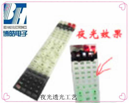 夜光硅膠按鍵指在硅膠原料中加入了一定比例的熒光粉,使用硅膠按鍵能夠在黑暗的環(huán)境下發(fā)出夜光。如圖: